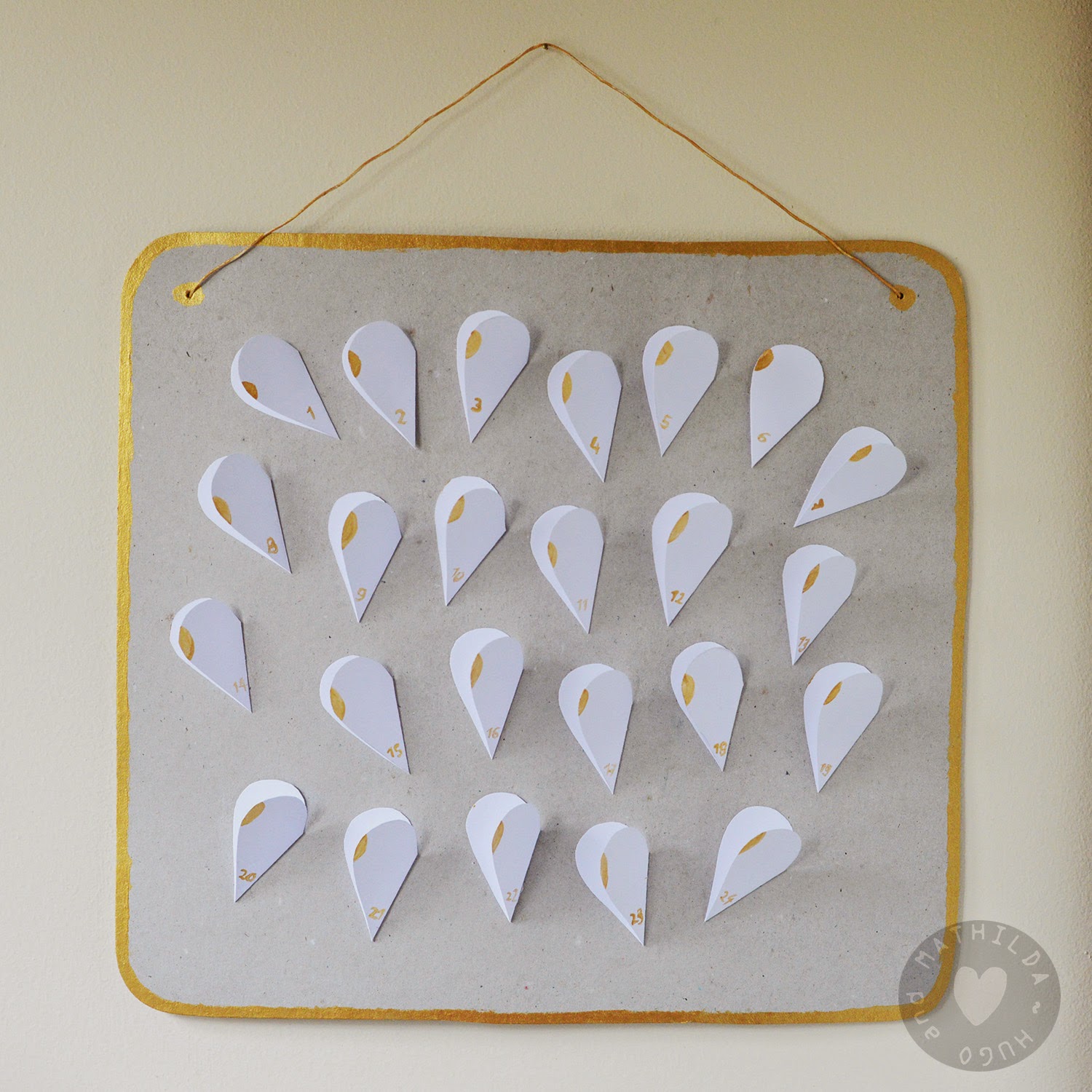 Do you know Charlie and Lola? I've always liked the stories and pictures by Lauren Child. I'm sure that you will recognize the hearts. We cut the little tear shaped pieces out of used packaging.