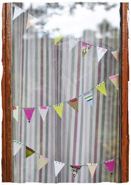 Do you know Charlie and Lola? I've always liked the stories and pictures by Lauren Child. I'm sure that you will recognize the hearts. We cut the little tear shaped pieces out of used packaging.